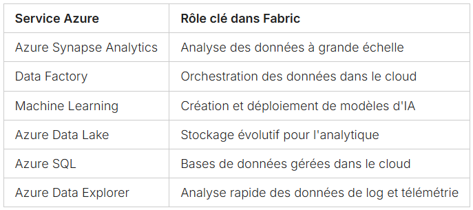 Quels sont les principaux services Azure intégrés dans Fabric ?