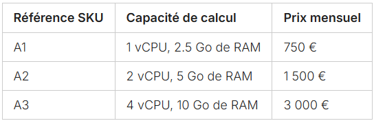 Les administrateurs doivent gérer les abonnements et licences. Les licences peuvent être gratuites ou payantes. Les références SKU définissent la puissance de calcul.